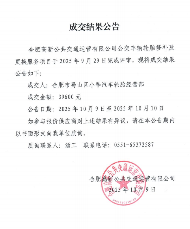 高新公共交通运营有限公司车辆报废与处置的资产评估成交结果公告