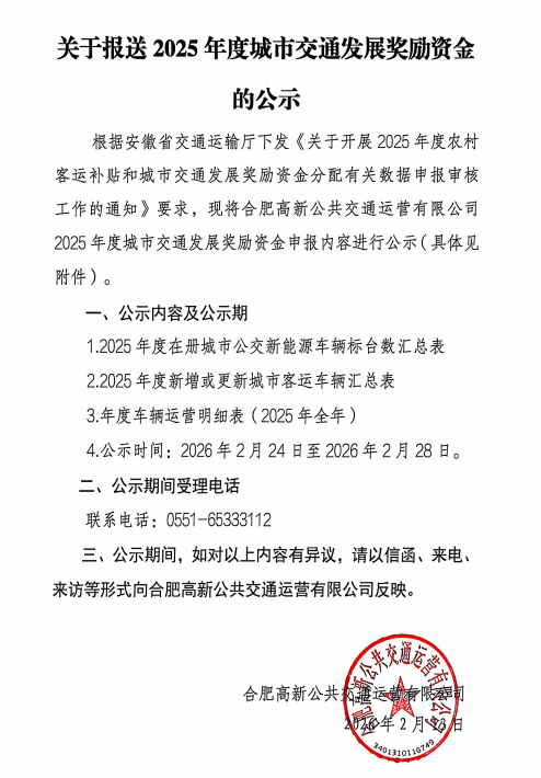 关于报送2025年度城市交通发展奖励资金的公示
